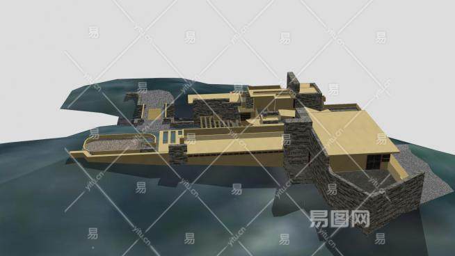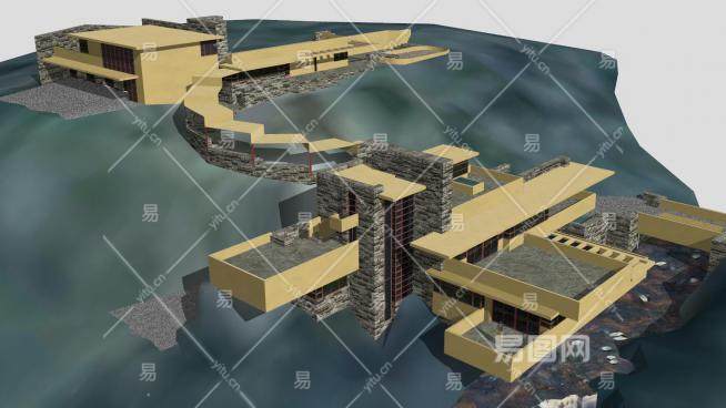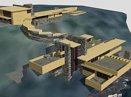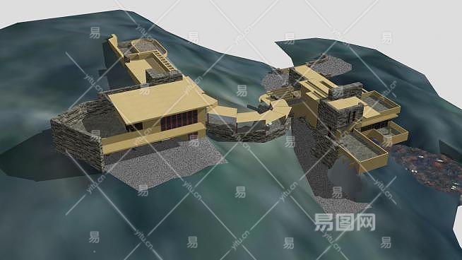 流水别墅建筑SU模型下载_sketchup草图大师SKP模型