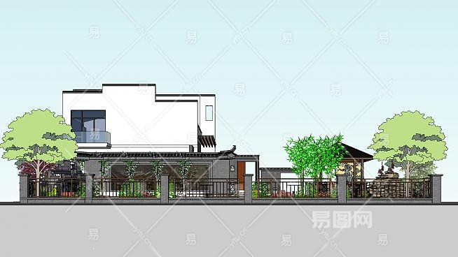 新中式别墅农乡村建筑景观SU模型下载_sketchup草图大师SKP模型