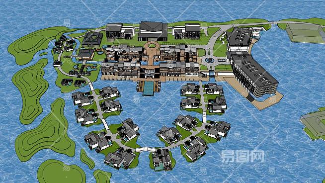度假村别墅商务办公SU模型下载_sketchup草图大师SKP模型
