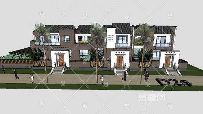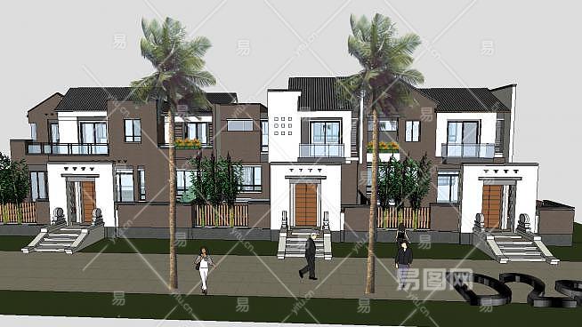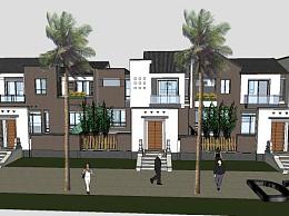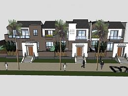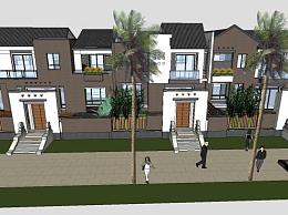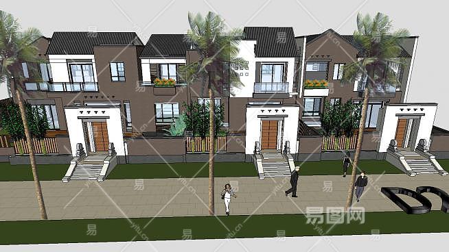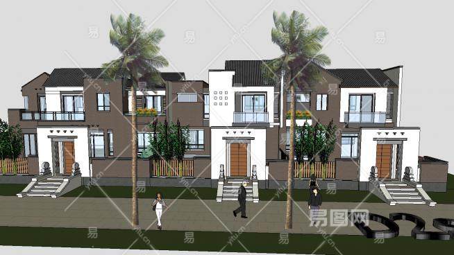 新中式建筑住宅联排别墅SU模型下载_sketchup草图大师SKP模型