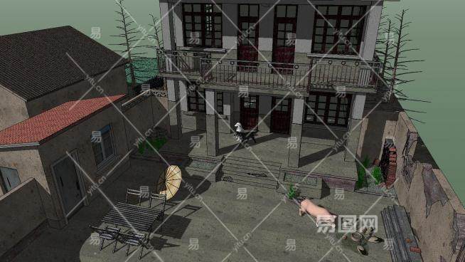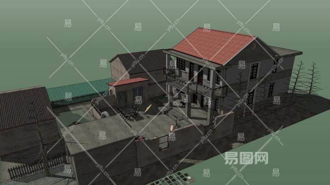 户外建筑破旧农民房建筑SU模型下载_sketchup草图大师SKP模型