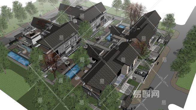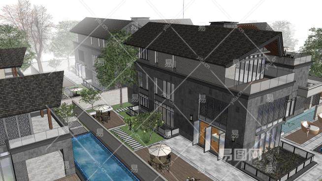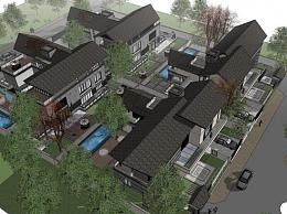 新中式风格建筑独栋别墅SU模型下载_sketchup草图大师SKP模型