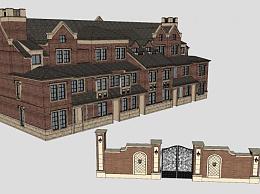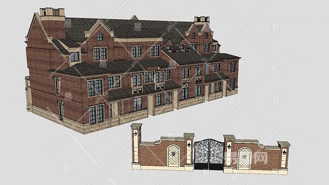 英式别墅铁艺大门和围墙SU模型下载_sketchup草图大师SKP模型