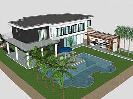 海滨别墅房子SU模型下载_sketchup草图大师SKP模型