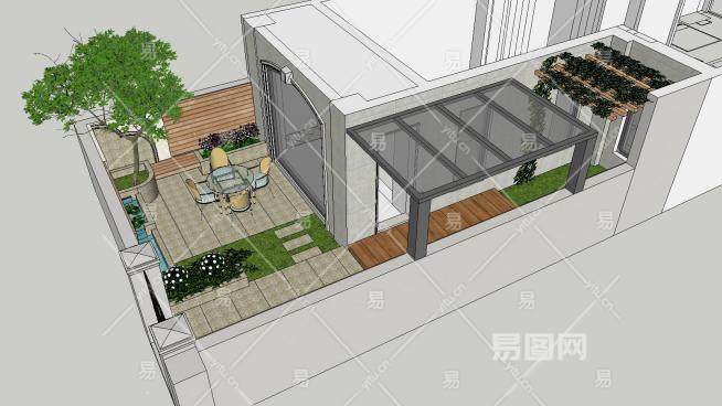 现代别墅庭院室外建筑SU模型下载_sketchup草图大师SKP模型
