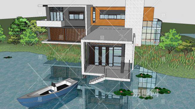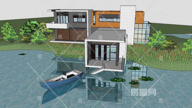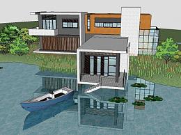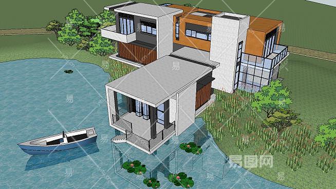 现代风格山地临湖独栋别墅SU模型下载_sketchup草图大师SKP模型