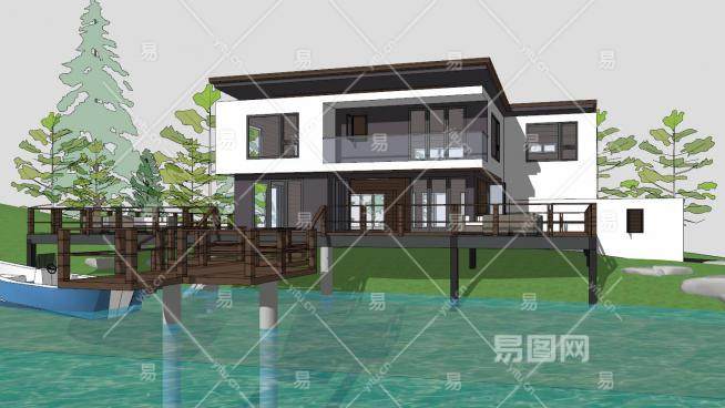 水岸边山地别墅SU模型下载_sketchup草图大师SKP模型
