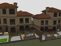 西班牙风格别墅建筑住宅SU模型下载_sketchup草图大师SKP模型