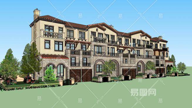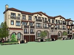 西班牙建筑联排别墅SU模型下载_sketchup草图大师SKP模型