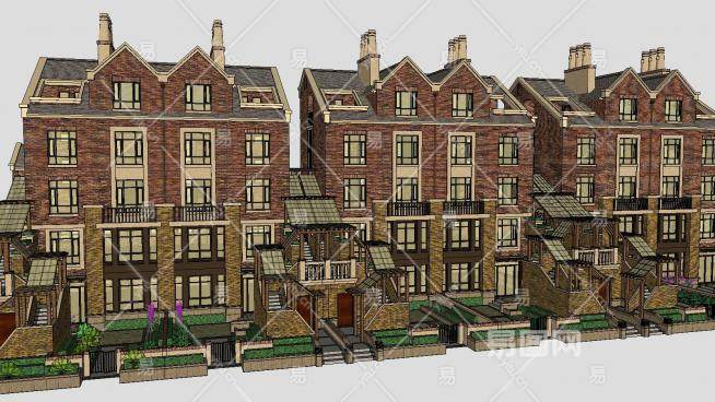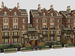 英式别墅联排建筑SU模型下载_sketchup草图大师SKP模型