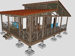 离地小木屋木房子SU模型下载_sketchup草图大师SKP模型