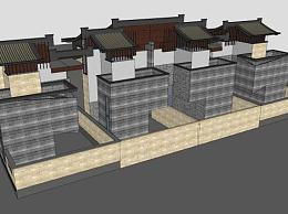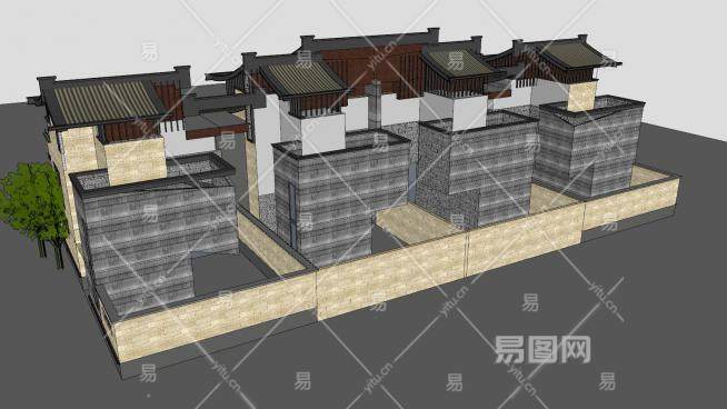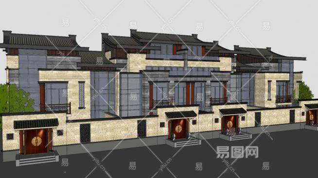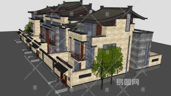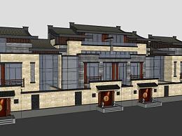 新中式联排别墅sketchup模型下载_sketchup草图大师SKP模型