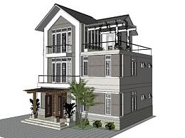 三层别墅su模型下载_sketchup草图大师SKP模型