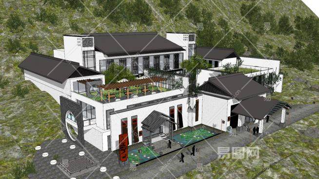 中式郊区别墅建筑sketchup模型下载_sketchup草图大师SKP模型