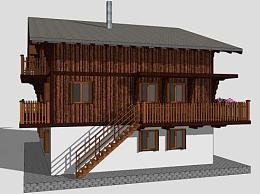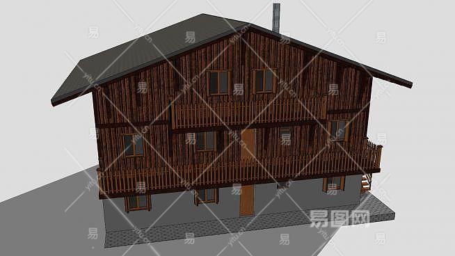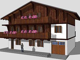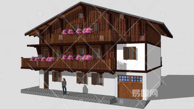 独立式住宅三层木楼房SU模型下载_sketchup草图大师SKP模型