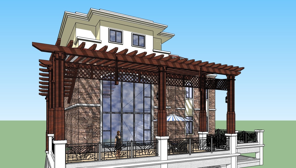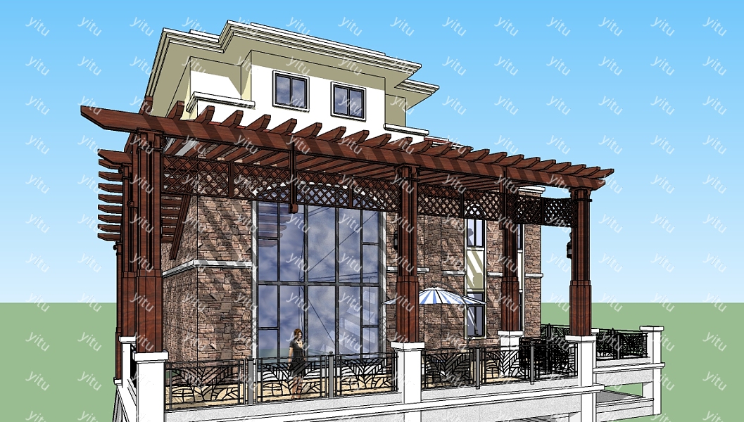 • 自然风别墅外观su模型下载,别墅居住草图大师模型分享