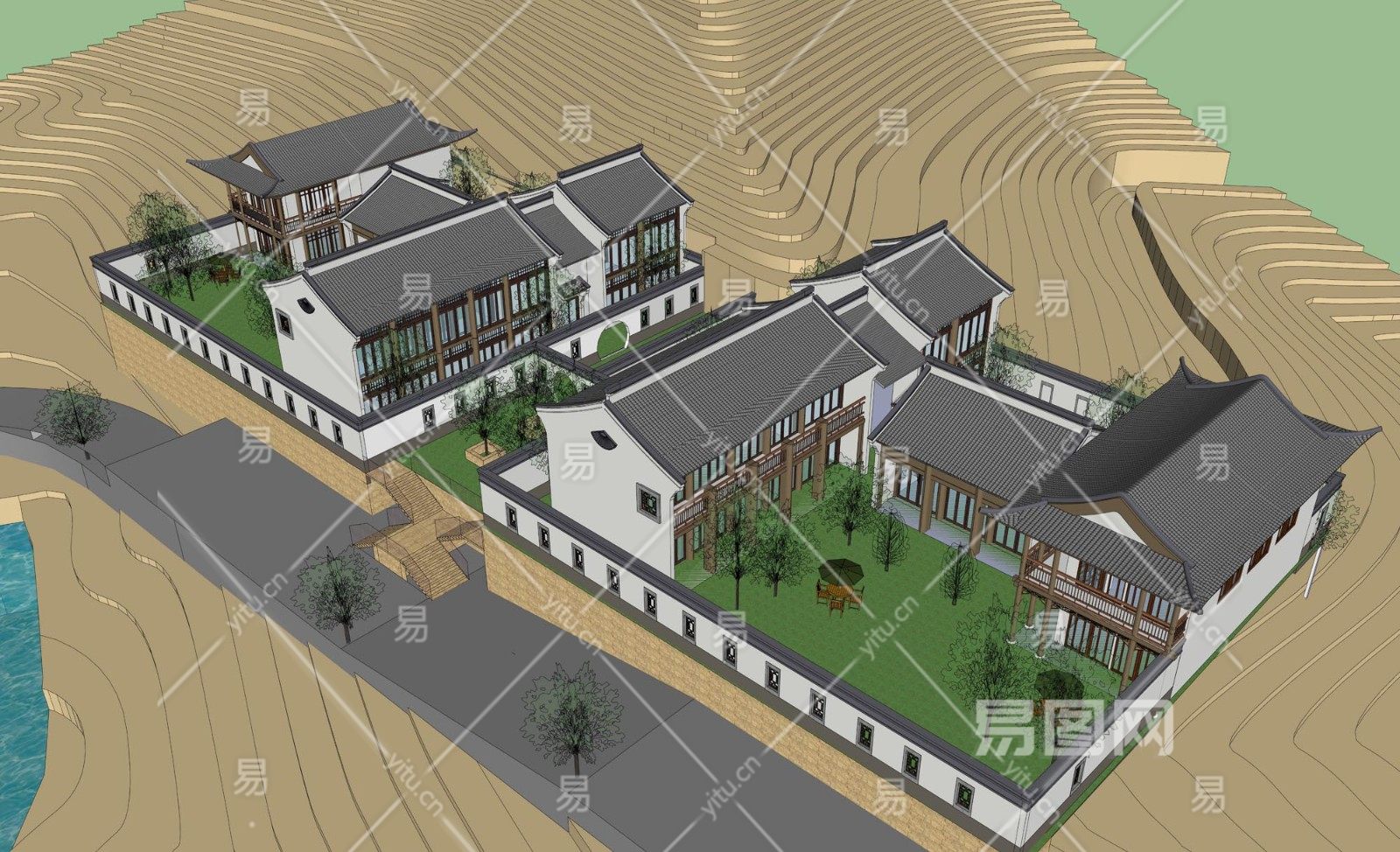 当前的位置:首页 > sketchup > sketchup模型 > 建筑 > 别墅居住 > 312半山中式别墅农家乐