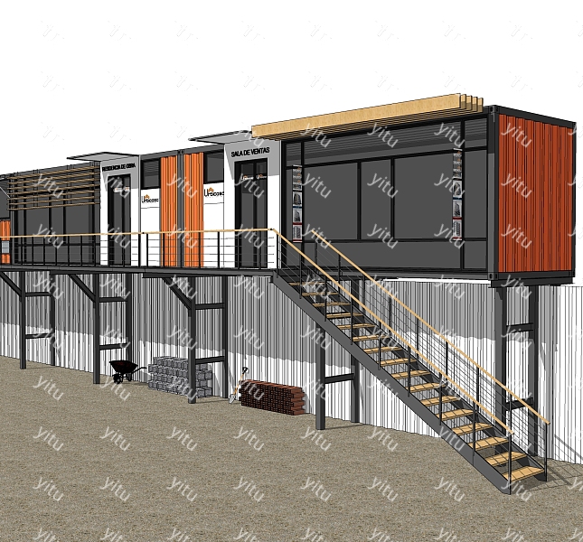 工业风集装箱住宅su模型下载,住宅外观草图大师模型分享