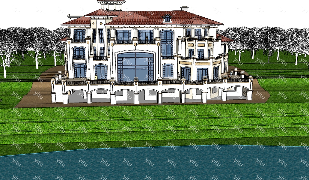 简欧建筑会所,sketchup模型免费下载