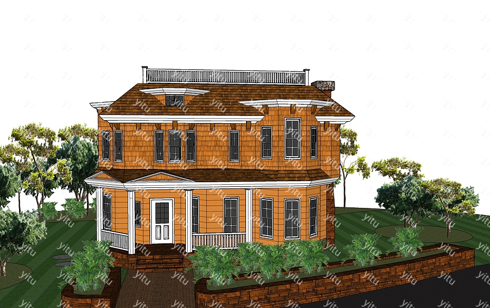 • 欧式别墅外观草图大师模型,SU模型免费下载
