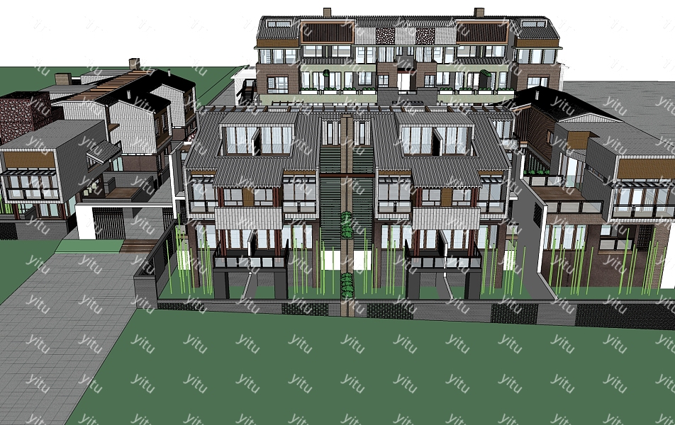 当前的位置:首页 > sketchup > sketchup模型 > 建筑 > 别墅居住 > 新中式别墅建筑,连排叠加别墅,SU模型免费下载