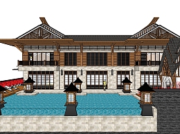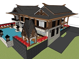 东南亚风格别墅su模型下载、东南亚风格别墅草图大师模型下载