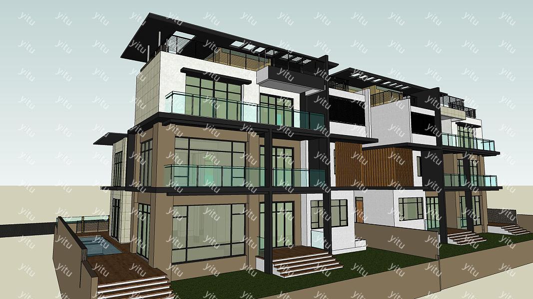 当前的位置:首页 > sketchup > sketchup模型 > 建筑 > 别墅居住 > 现代联排别墅su模型,别墅skp模型下载