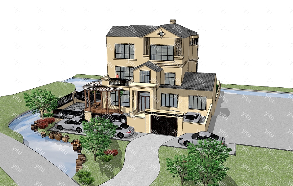 欧式别墅sketchup模型,别墅su模型下载