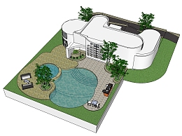 现代欧式泳池别墅草图大师模型,别墅SU模型下载