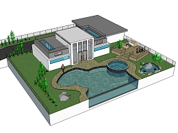 现代欧式泳池别墅草图大师模型,别墅SU模型下载