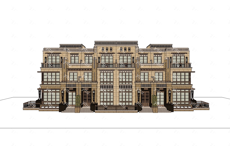 当前的位置:首页 > sketchup > sketchup模型 > 建筑 > 别墅居住 > 欧式连排别墅草图大师模型,别墅sketchup模型免费下载