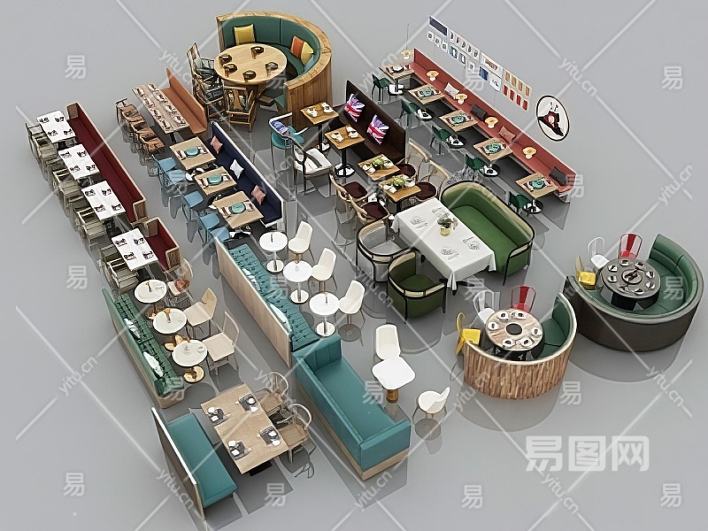 现代卡座沙发 餐桌椅组合 卡座餐桌椅