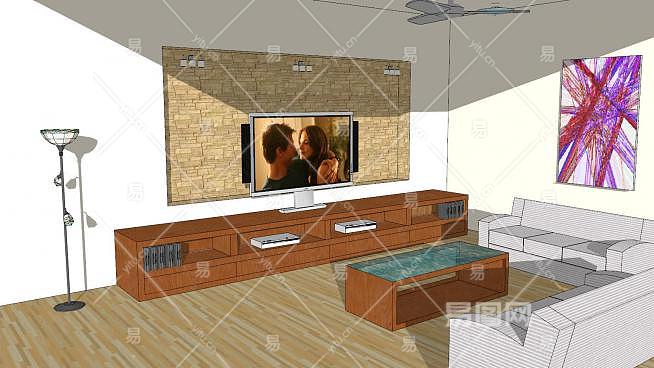 现代中式风格客厅设计SU模型下载_sketchup草图大师SKP模型