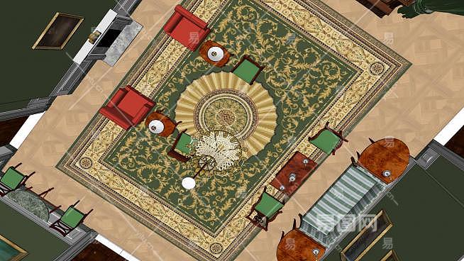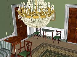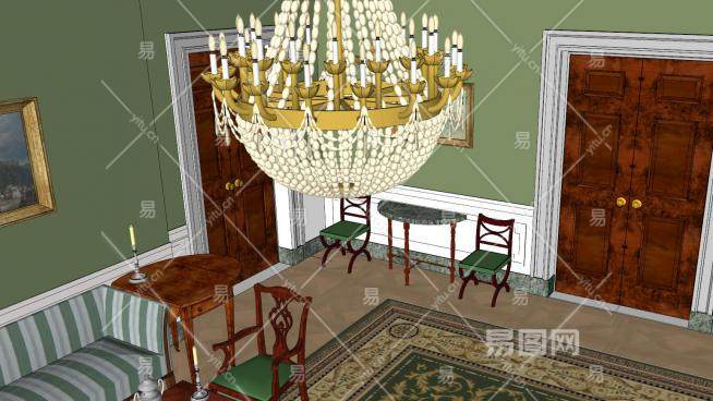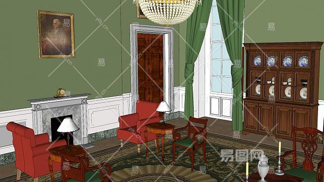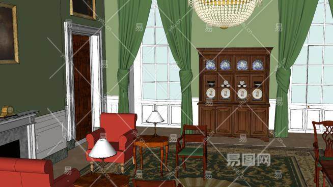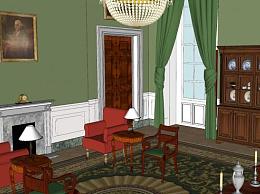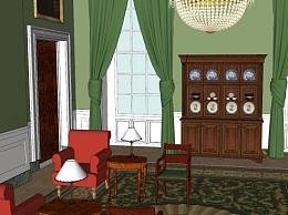 白宫内部绿色客厅SU模型下载_sketchup草图大师SKP模型