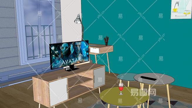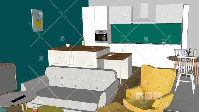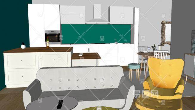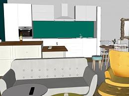 巴黎公寓现代客厅SU模型下载_sketchup草图大师SKP模型