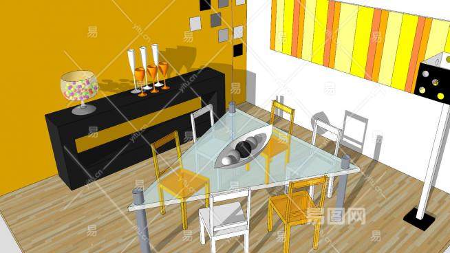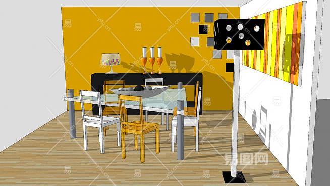 现代餐厅装修SU模型下载_sketchup草图大师SKP模型