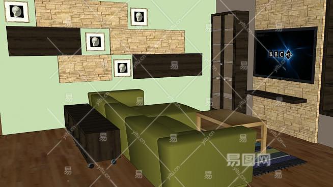 宜家风格客厅家具装修SU模型下载_sketchup草图大师SKP模型
