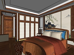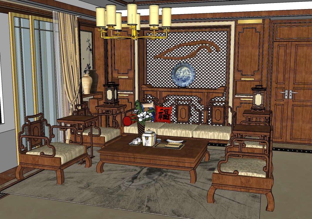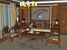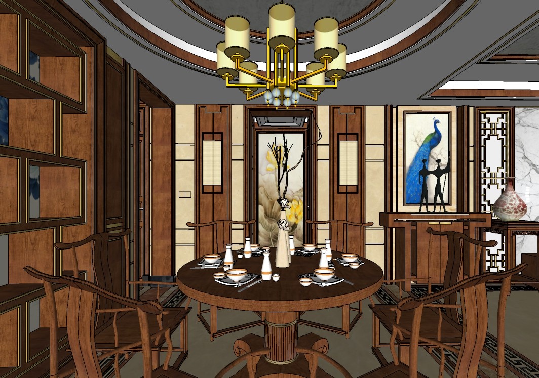 新中式客餐厅草图大师模型,客餐厅shetchup模型