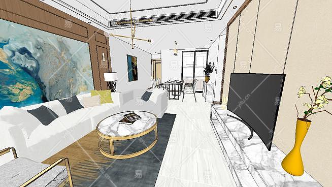 现代轻奢家装客厅儿童房卧室SU模型下载_sketchup草图大师SKP模型