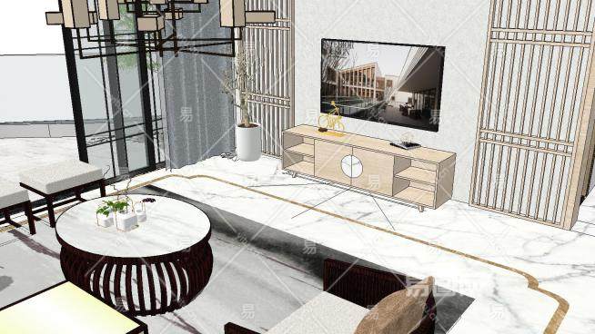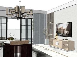 新中式全屋空间客餐厅SU模型下载_sketchup草图大师SKP模型