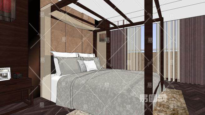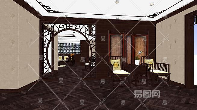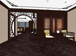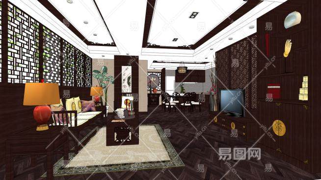 中式风格样板间客厅装修SU模型下载_sketchup草图大师SKP模型