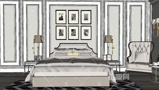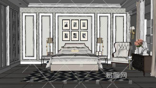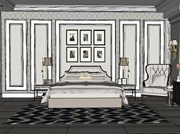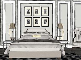 美式风格卧室装修SU模型下载_sketchup草图大师SKP模型