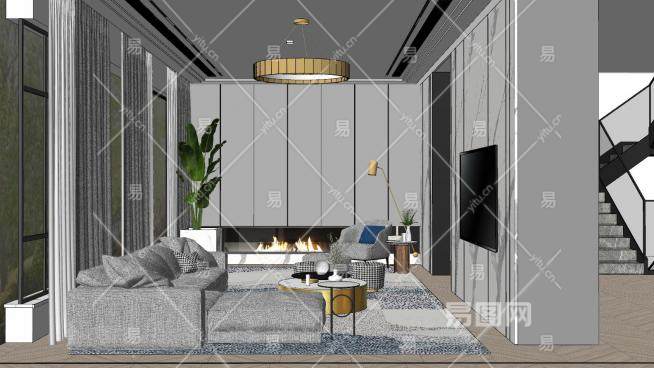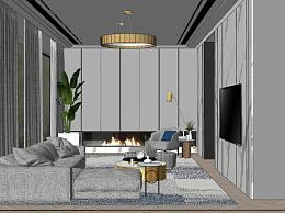 现代别墅客厅厨房SU模型下载_sketchup草图大师SKP模型