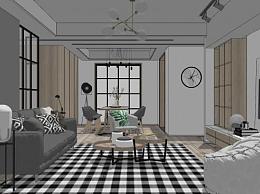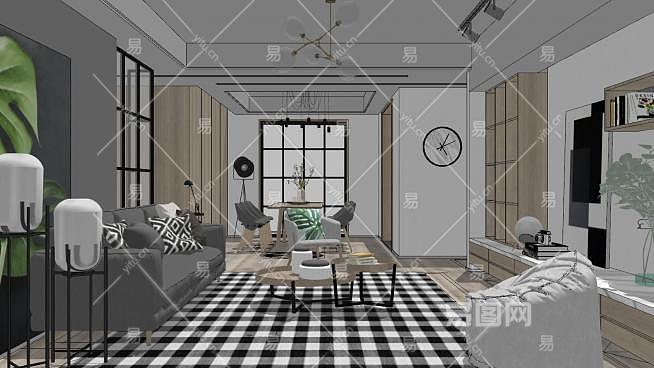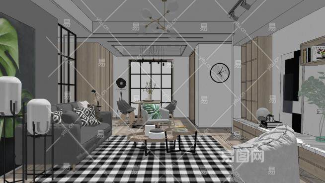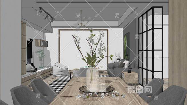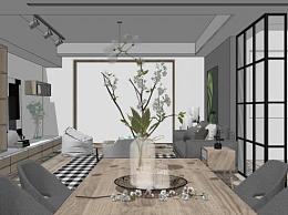 北欧灰色装修客餐厅SU模型下载_sketchup草图大师SKP模型