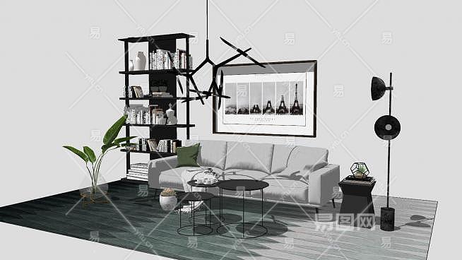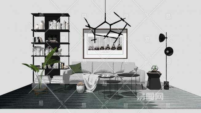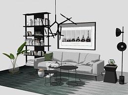 现代性冷淡北欧客厅软装SU模型下载_sketchup草图大师SKP模型