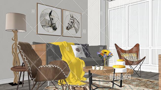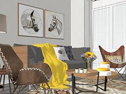 现代单身公寓客厅SU模型下载_sketchup草图大师SKP模型