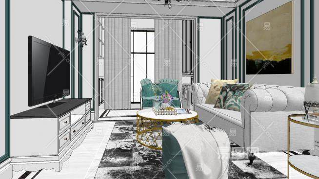 简欧轻奢客厅室内SU模型下载_sketchup草图大师SKP模型