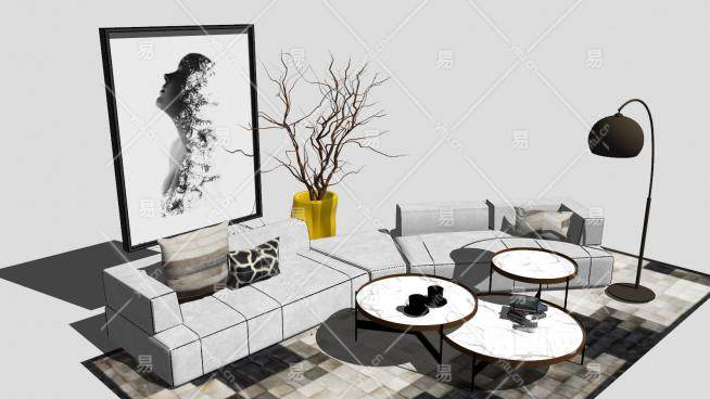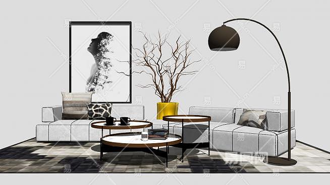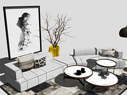 简欧风客厅家装SU模型下载_sketchup草图大师SKP模型