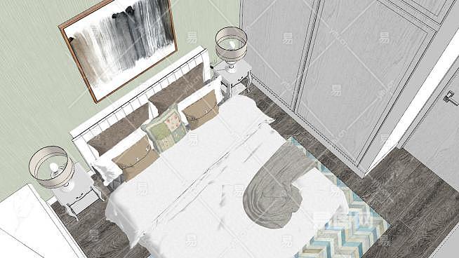 现代简欧家装户型SU模型下载_sketchup草图大师SKP模型
