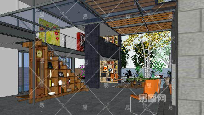 现代别墅大堂SU模型下载_sketchup草图大师SKP模型